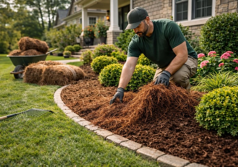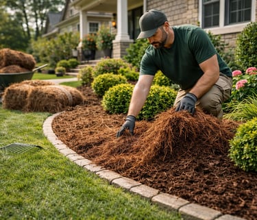 Pinestraw installation adds a natural, attractive finish to landscape beds and outdoor areas. It helps improve the overall appearance of your property and gives your yard a clean, well-kept look.