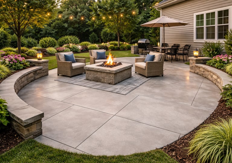 A concrete patio adds a functional and attractive outdoor area for relaxing, gathering, and enjoying your property. It is a durable improvement that helps make your backyard more useful and visually appealing.